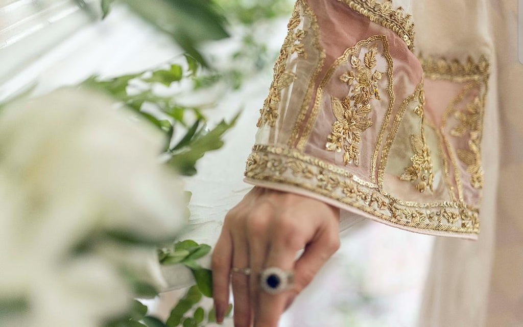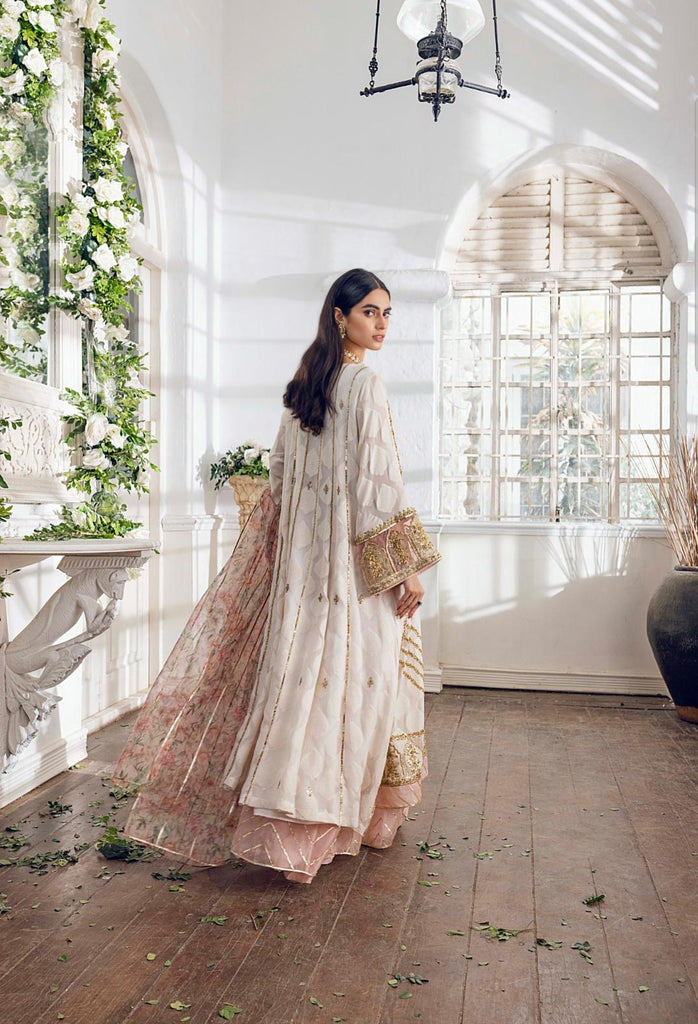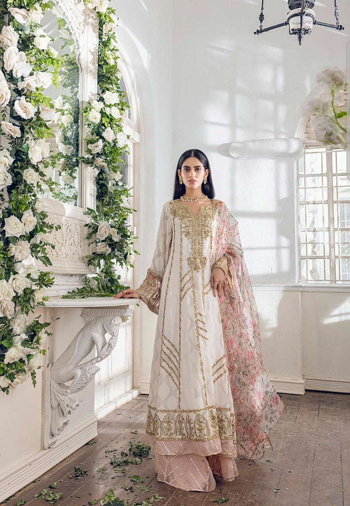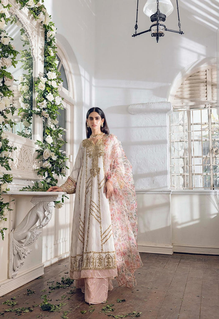 It's all in the details for " Husn Ara ". Intricate details you won't find elsewhere, this 100% handmade beauty is curated on pure karandi chiffon with heavy zardosi craftsmenship. Paired with a matching gotah pure organza skirt and dreamy printed dupatta.