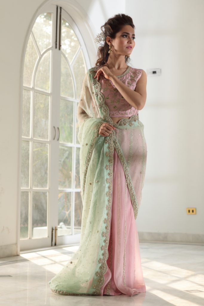 Color: Blush Pink with Mint Green Dupatta